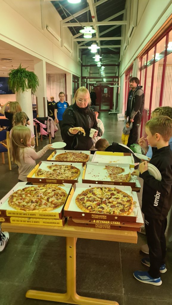 Etter økten ble det sosialt samvær med pizza og god stemning – en perfekt avslutning på en hyggelig kveld. Smilene satt løst, og både små og store gikk hjem med ny motivasjon for vinterens trening og konkurranser.